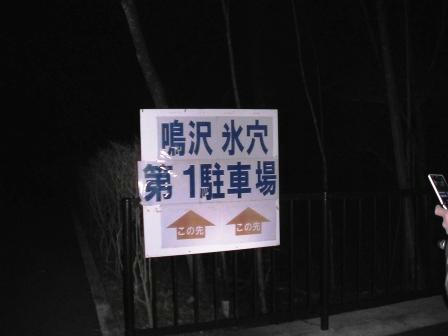 次のカーブを抜ければ車を止めた入口…という所で、木々の向こう側からチラチラと明かりが見える。