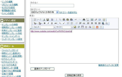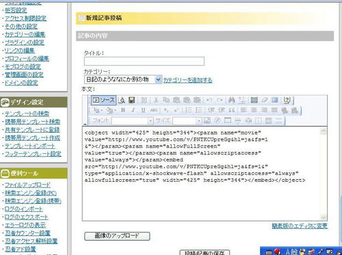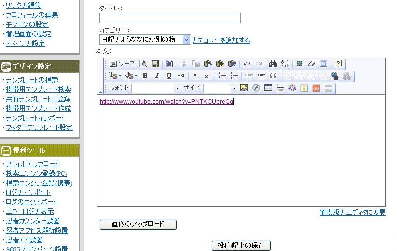 まめこさんのblogを見る限り、どうもウマく画像貼りつけと動画埋め込みができていないようなので、老婆心ながらNINJAの使い方を簡単に説明してみるよ!