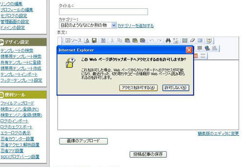 8)このとき、ブラウザの設定などによっては「このwebページがクリップボードに~」とかいうダイアログがでますので、「アクセスを許可」してください。