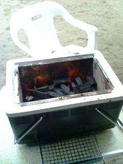 道具を運び、セッティングしつつ一人勝手にビールを呑みつつ、BBQスタートです。