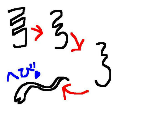 父親「でもこのままだと書きづらくてな。だんだん簡略化されていった、というわけだ。こんな感じに」
