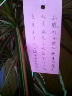 「お腹の子供が無事に生まれて、麻衣も元気でいられますように。(親子3人元気で)」