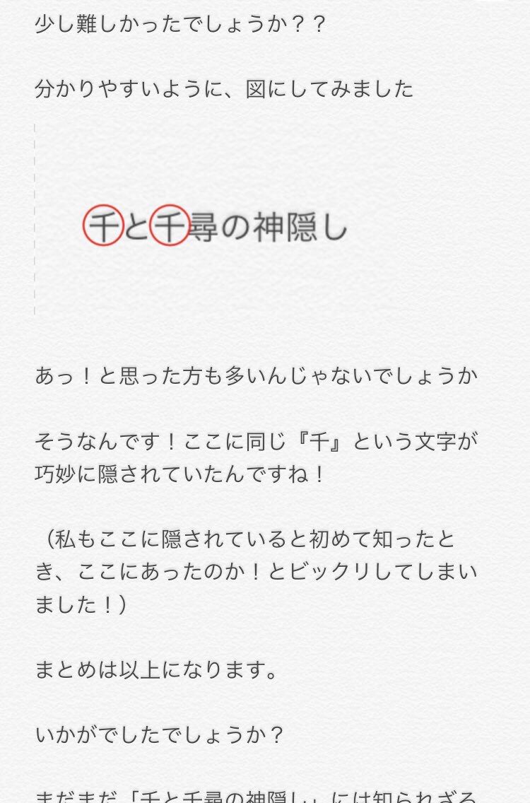引用元:まとめサイト「千と千尋の神隠しのタイトルには恐るべき秘密が隠されていた!」