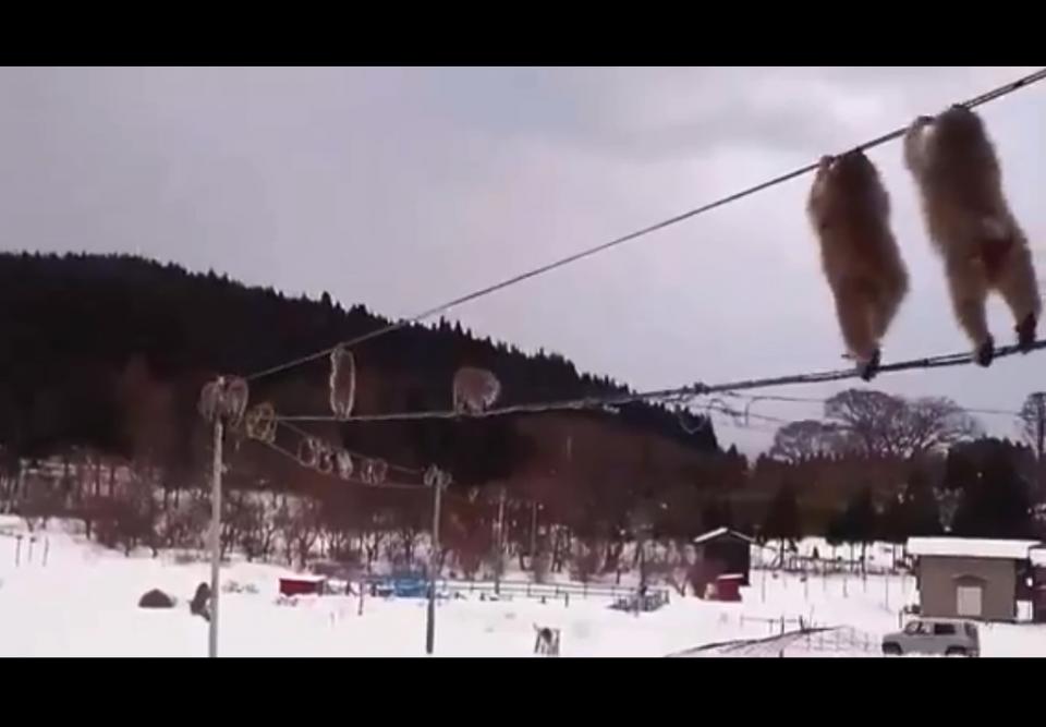 お猿さんの大群が、電線で綱渡り! サーカスみたいな衝撃動画、青森で撮影される