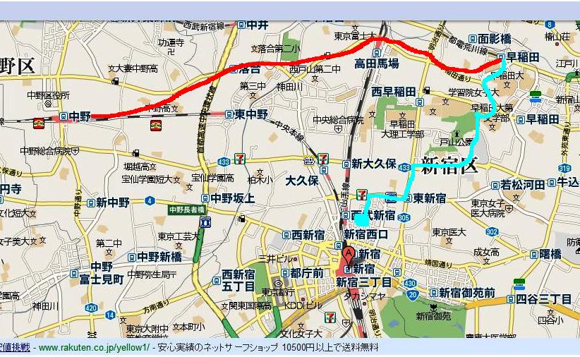 中野から早稲田まで地下鉄で行って、歩いて新宿まで戻ってきたってこと?