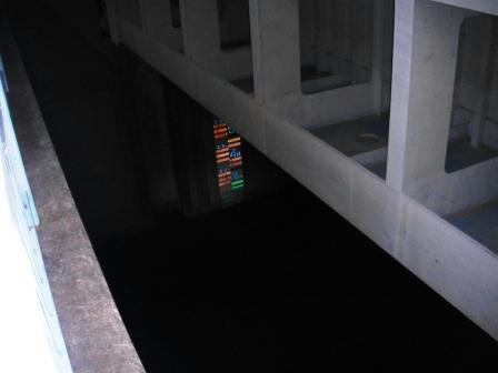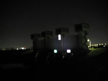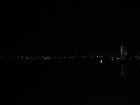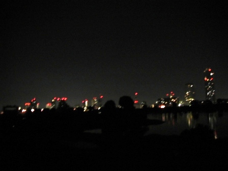 川べりの遊歩道の向こう側に見える大きな建造物…。