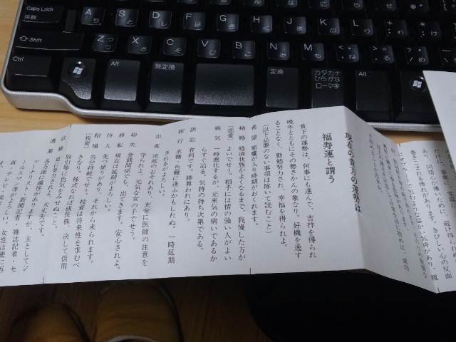 おみくじ、1月1日にひいたのに…なんでこんなに遅くなったのか、というと正直忘れてたスマン。